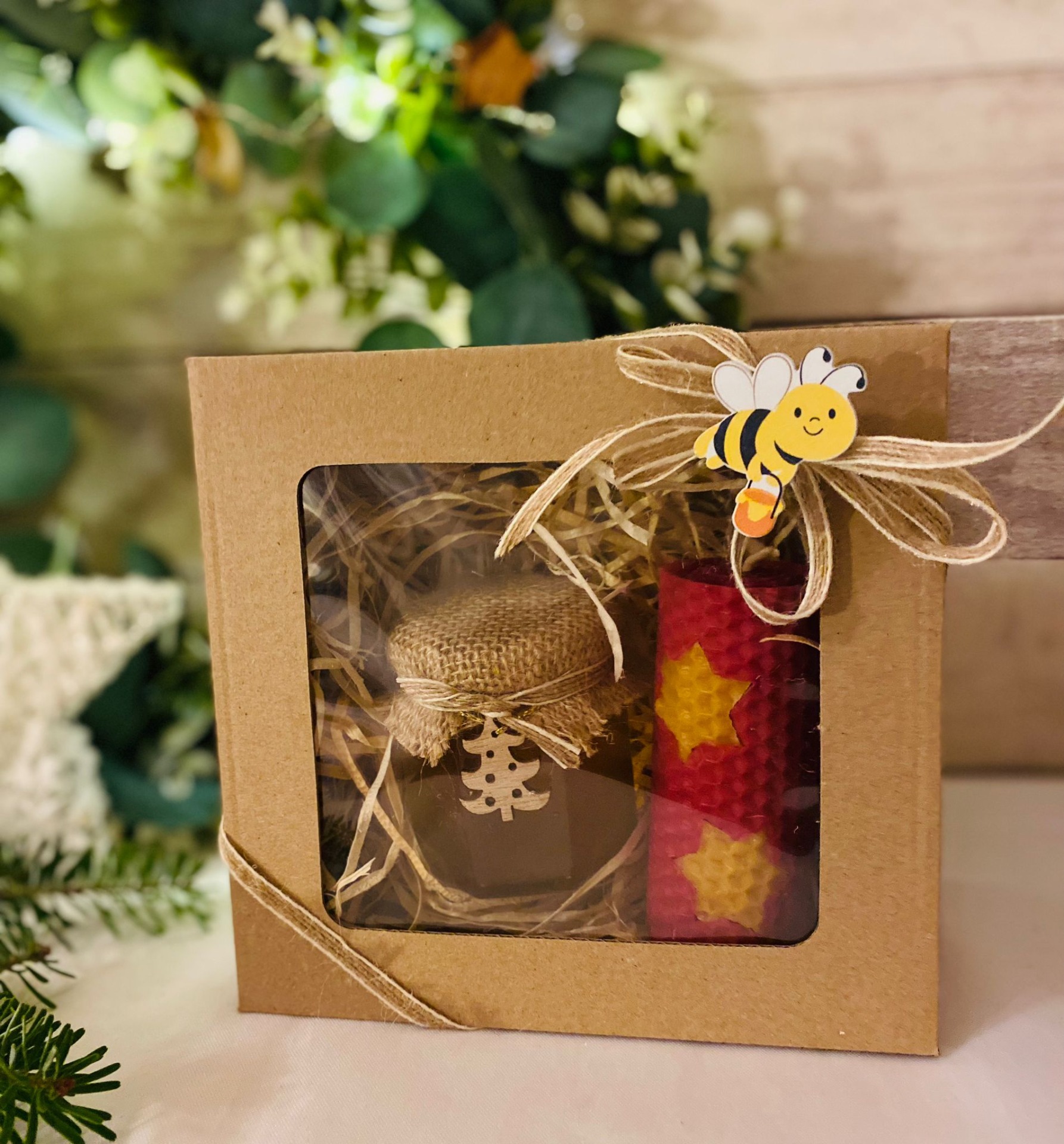 Nabízíme a případně vám vyrobíme na míru dle přání dárková balení včelích produktů vyrobených z medu, vosku, a dalších včelích doplňků